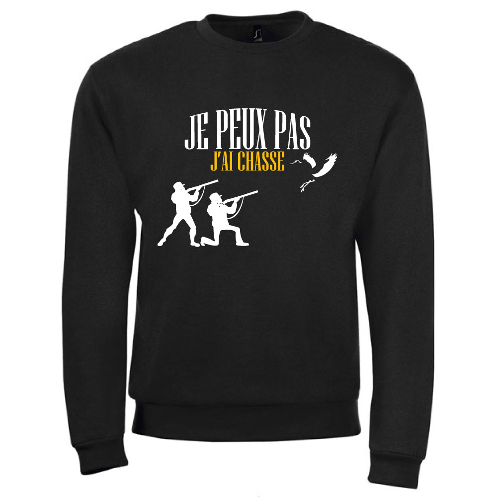 Sweat noir je peux pas j'ai chasse (marque déposée)