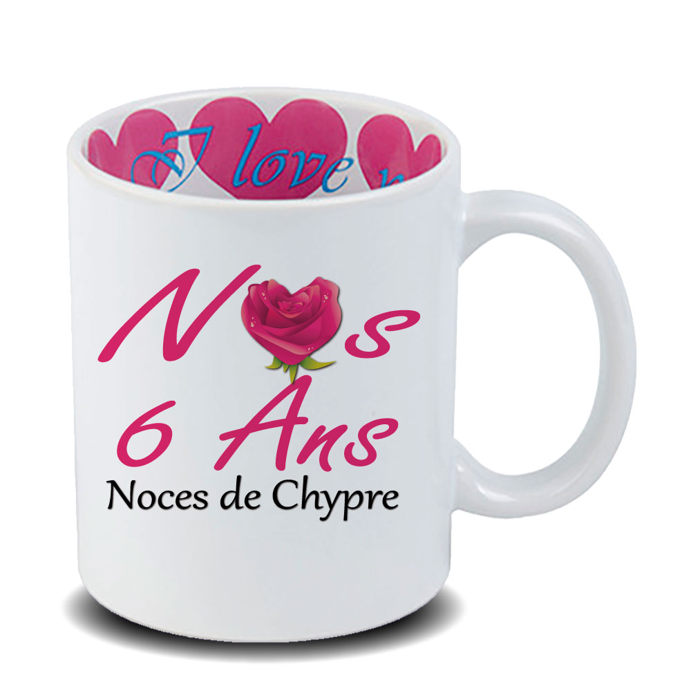 Mug anniversaire de mariage 6 ans noces de Chypre en ceramique