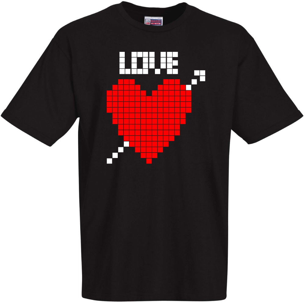 T-shirt noir I love you pixel, cadeau fete des mères, cadeau saint valentin