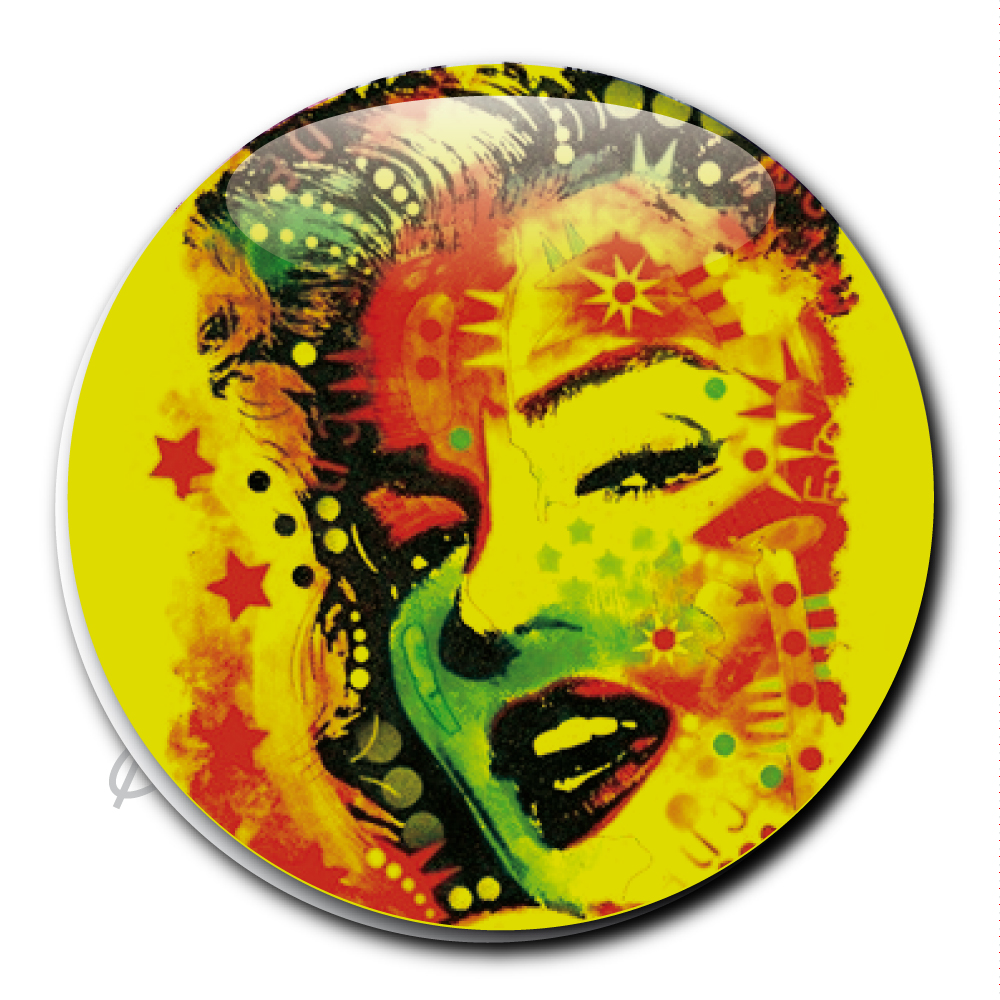 Badge pin's Marilyn yellow colors, pin's broche métallique au motif biker et amateur de marilyn monroe...