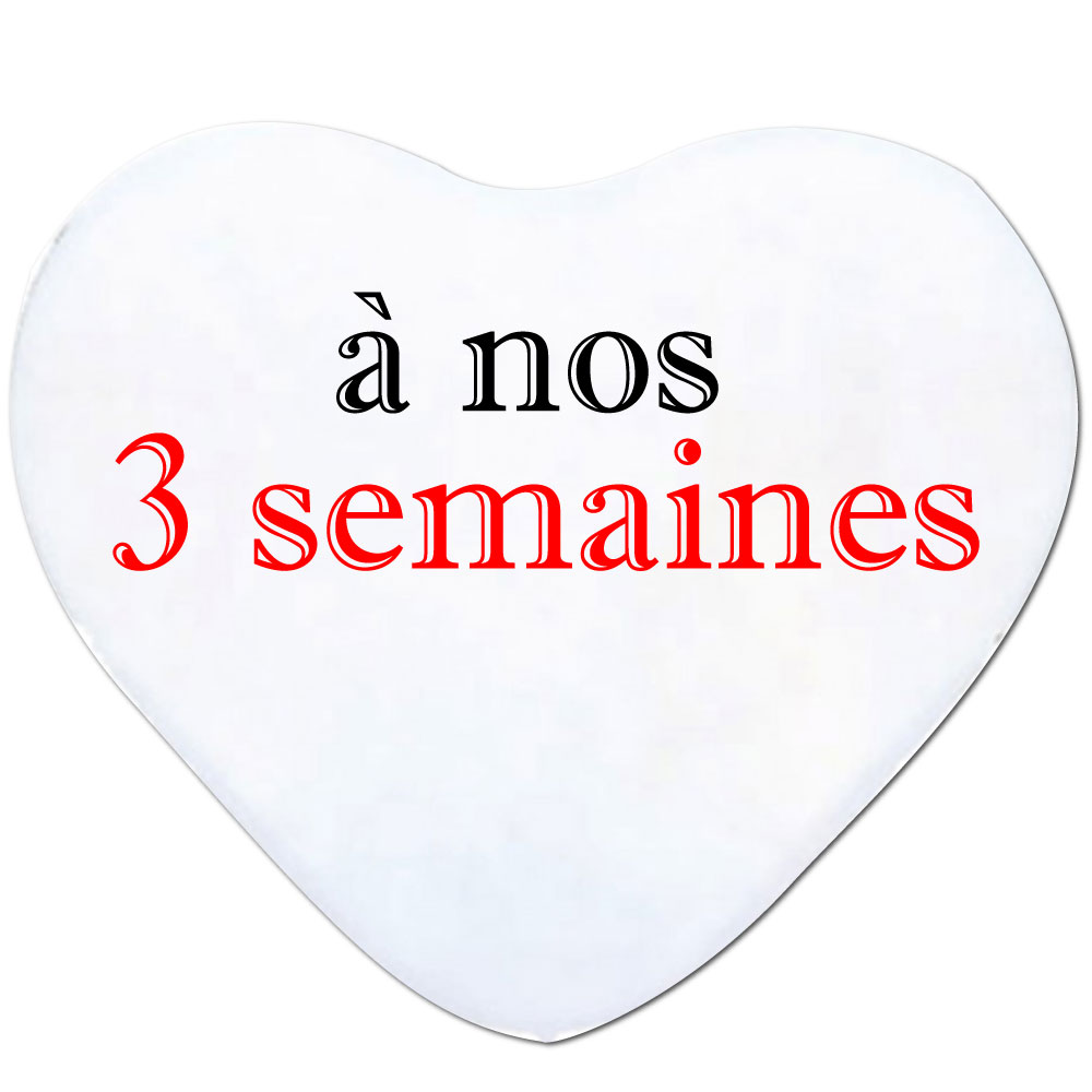 Coussin cœur "à nos 3 semaines"