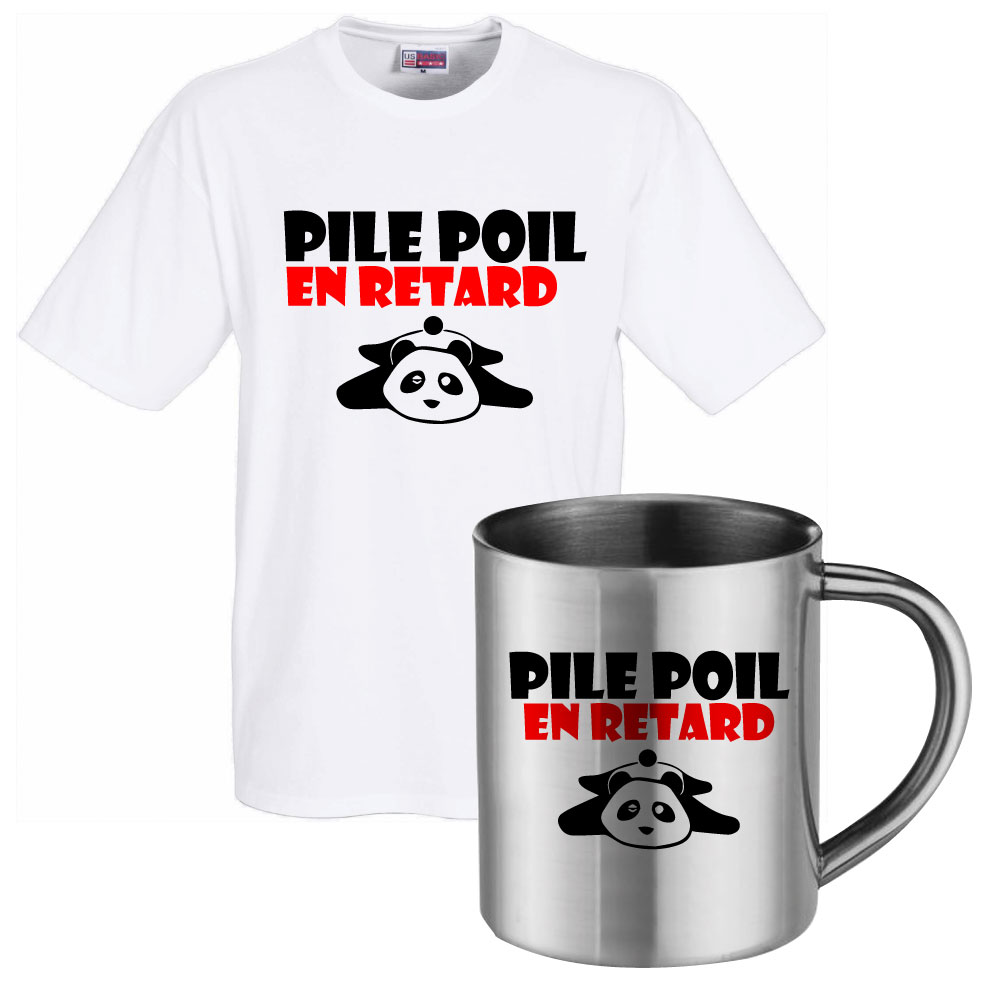 Ensemble T-shirt blanc et mug Pile Poil en retard