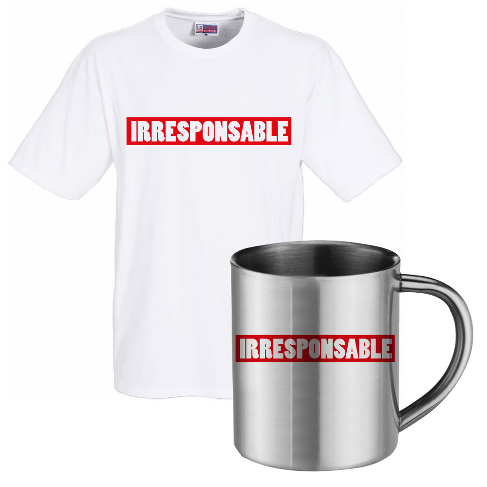 Ensemble tee shirt blanc et mug inox "irresponsable"