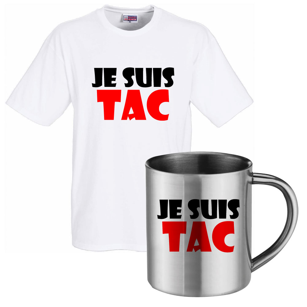 Ensemble tee shirt blanc et mug inox "Je suis TAC"