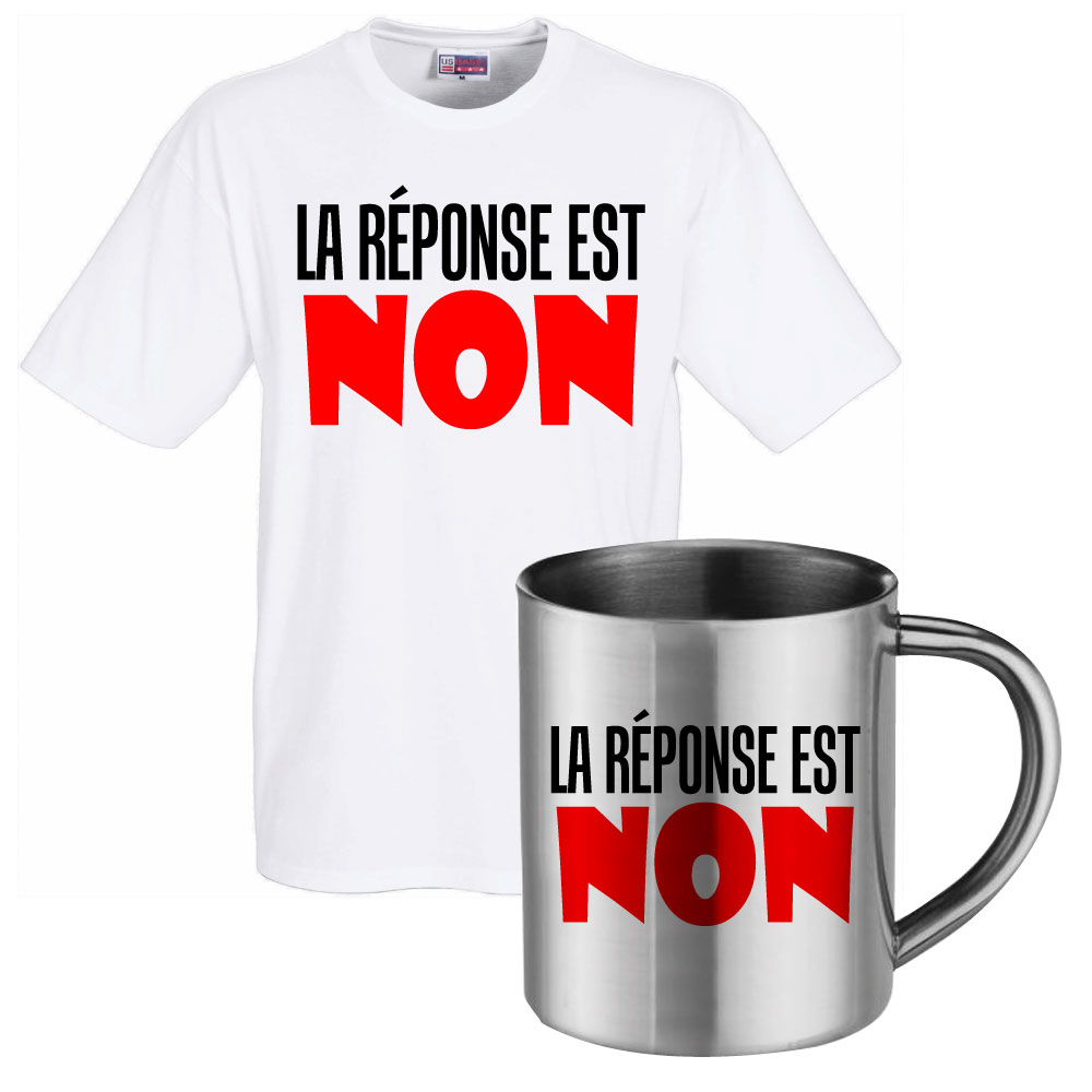 Ensemble tee shirt blanc et mug inox "La réponse est NON"