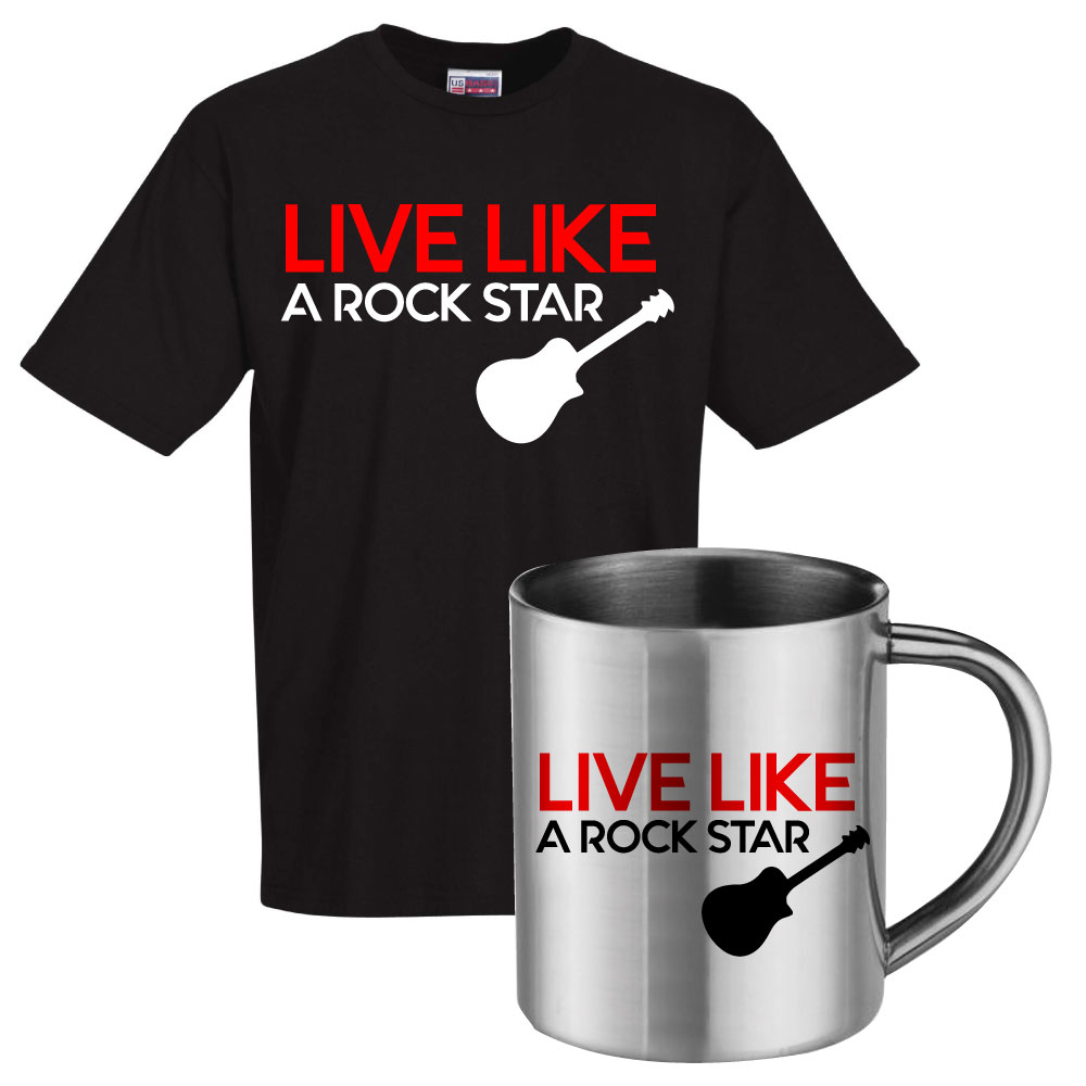 Ensemble Tshirt et mug "LIVE LIKE A ROCK STAR"