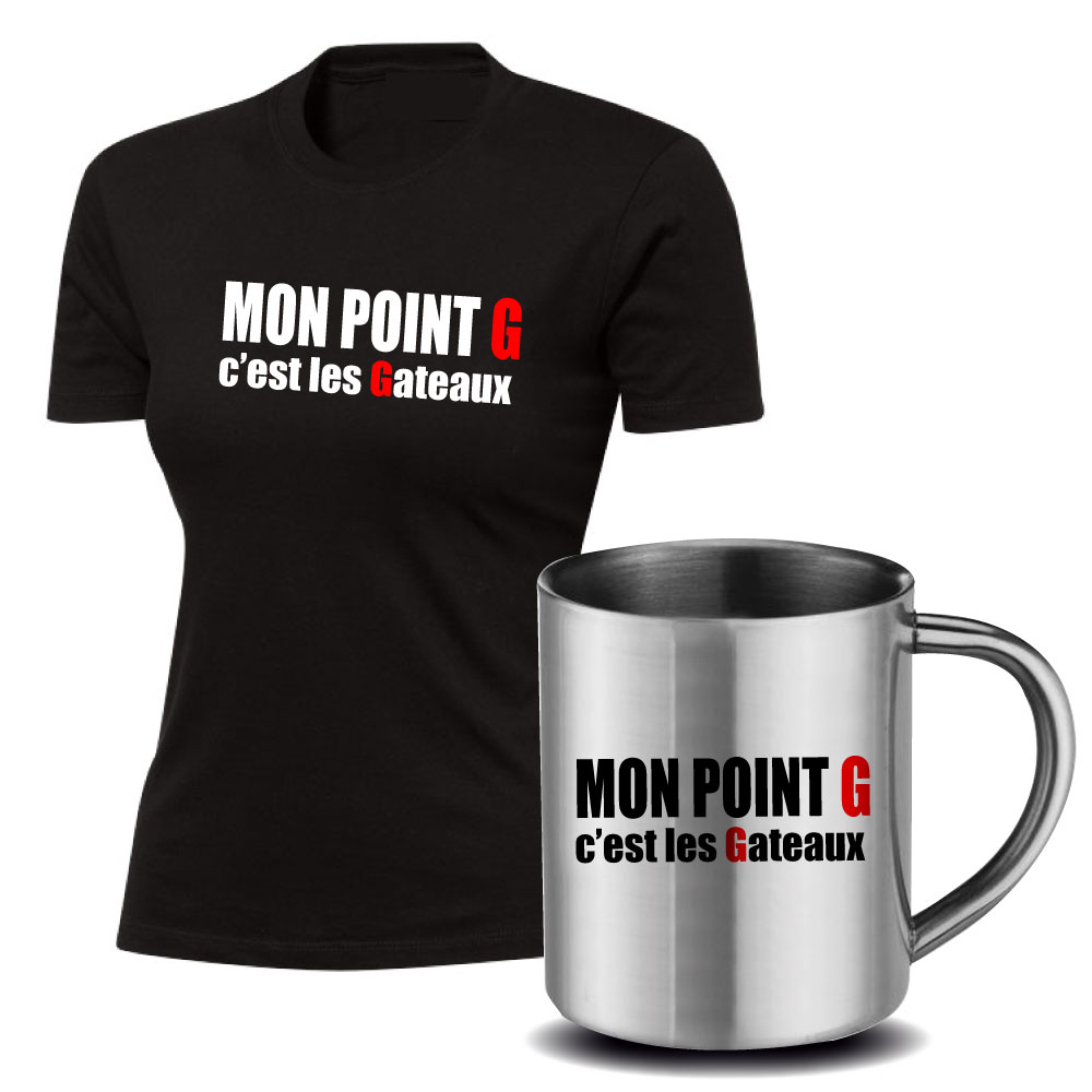 Ensemble Tshirt et mug " Mon point G c'est les Gateaux "