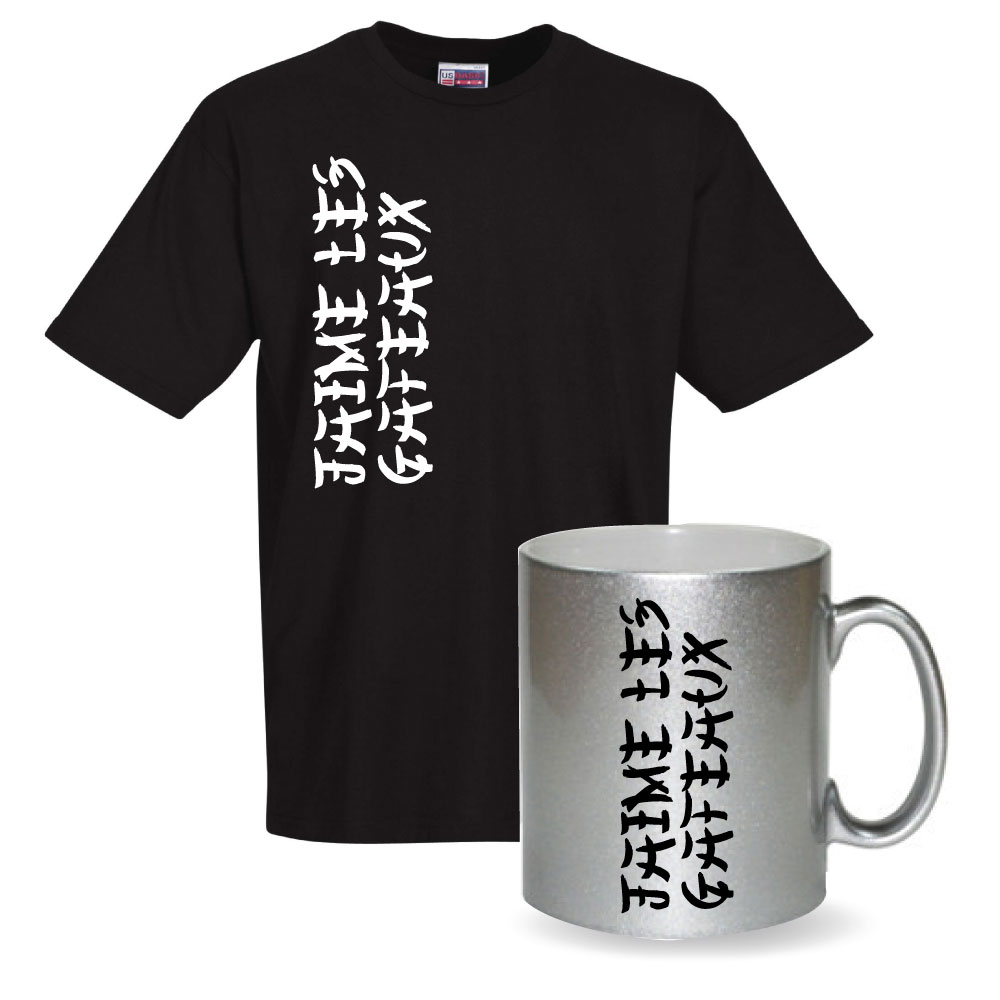 Ensemble tee shirt noir et mug pailleté J'aime les Gâteaux sous forme d'un faux message Chinois
