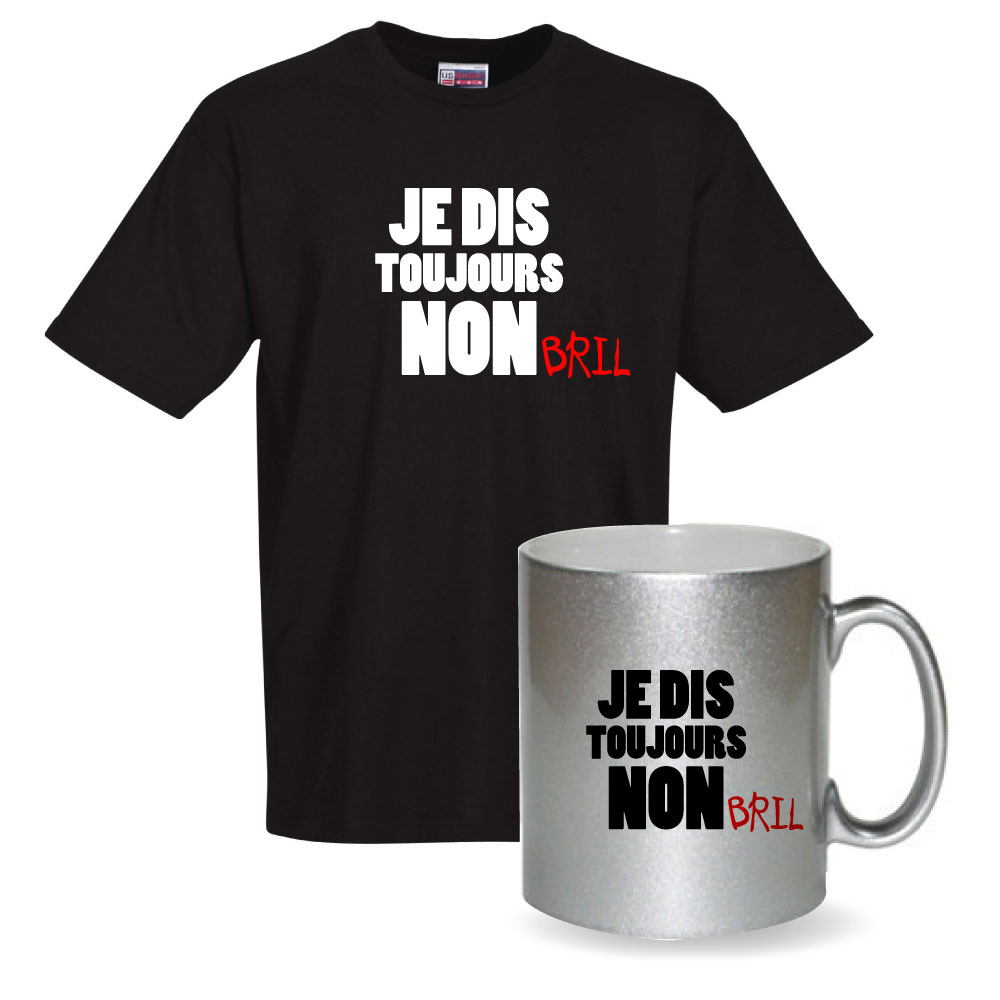 Ensemble Tshirt et mug Pailleté Je dis toujours NONbril