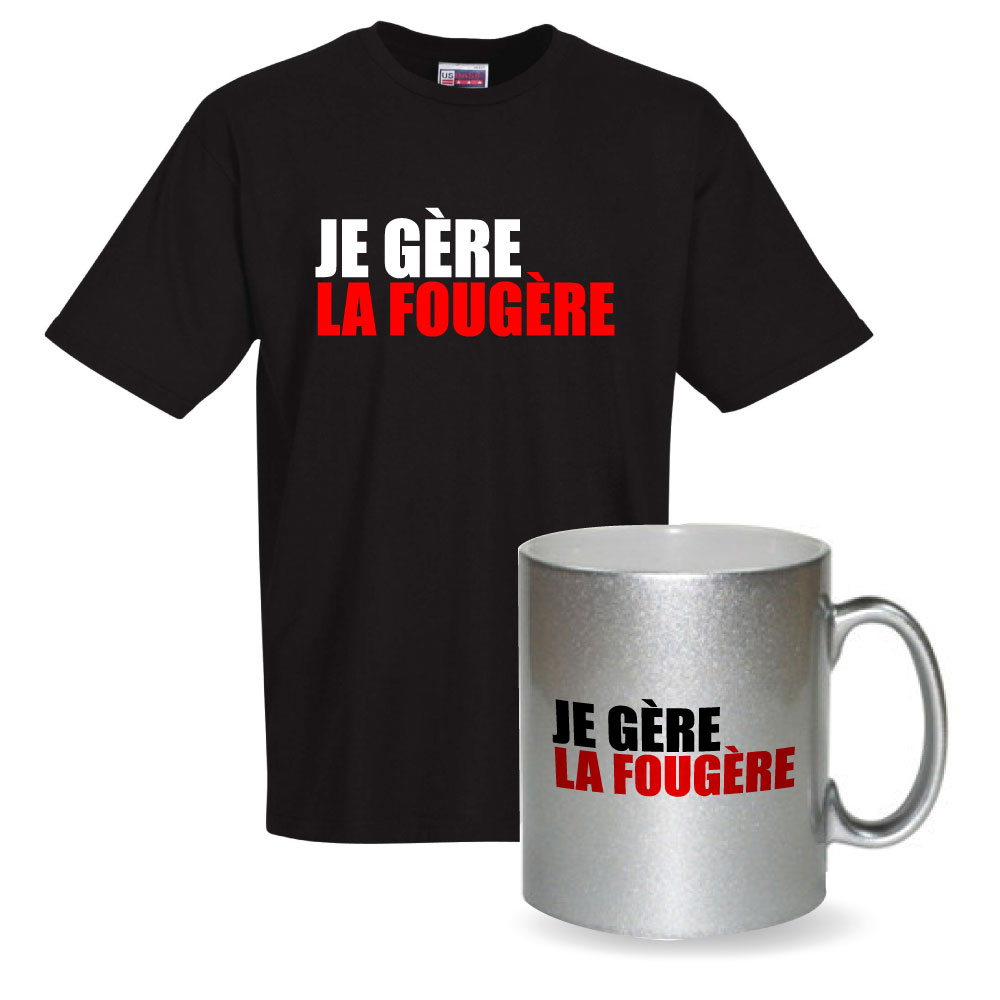 Ensemble tee shirt noir et mug pailleté Je gère la Fougère