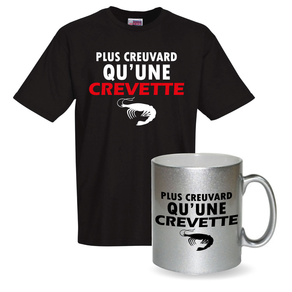Ensemble Tshirt et mug Pailleté "Plus Creuvard qu'une Crevette"