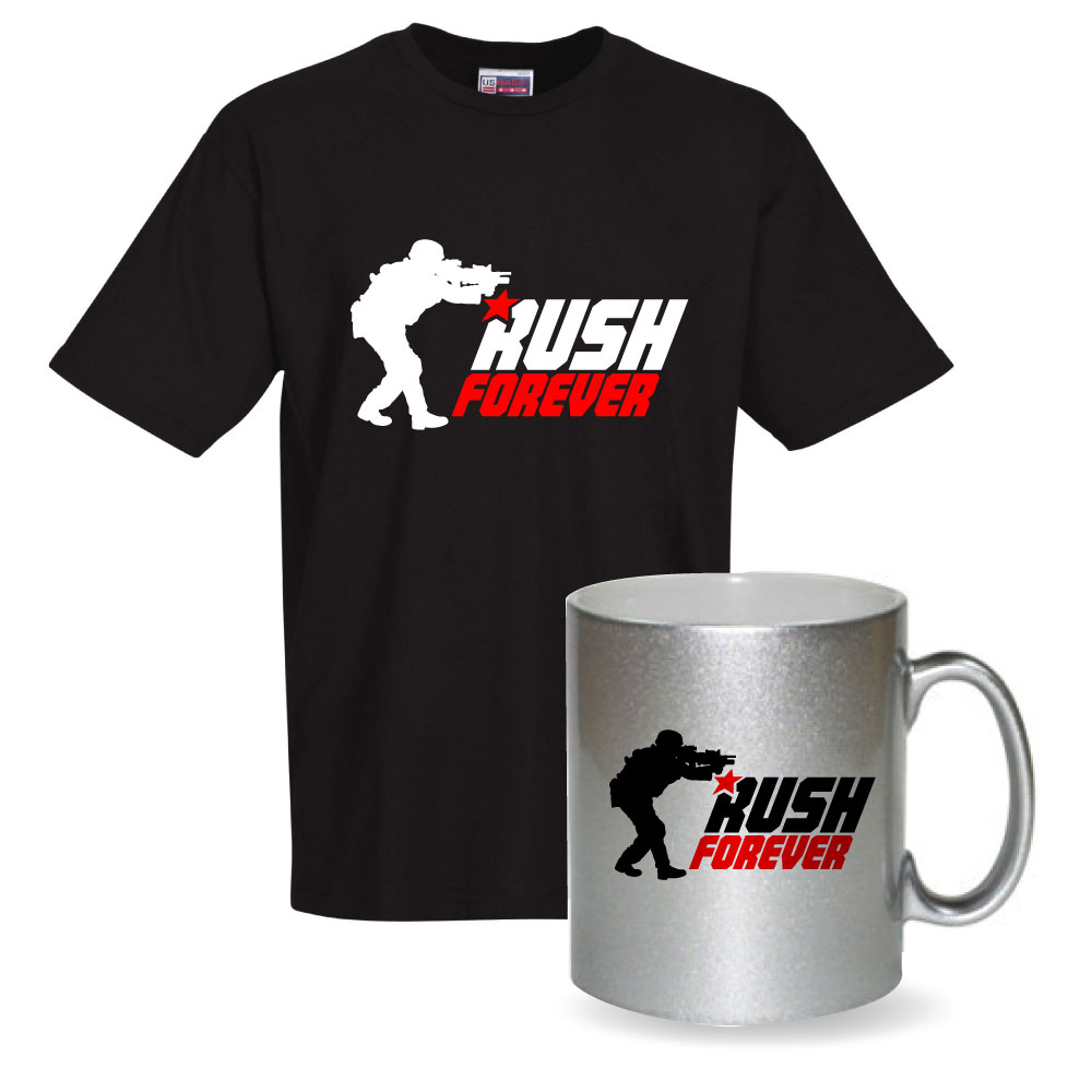 Ensemble tee shirt noir et mug pailleté "Rush Forever"