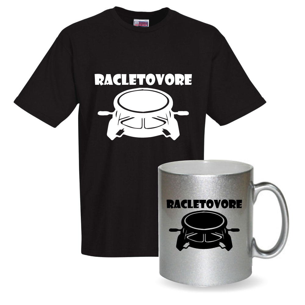 Ensemble tee shirt noir et mug pailleté "racletovore"