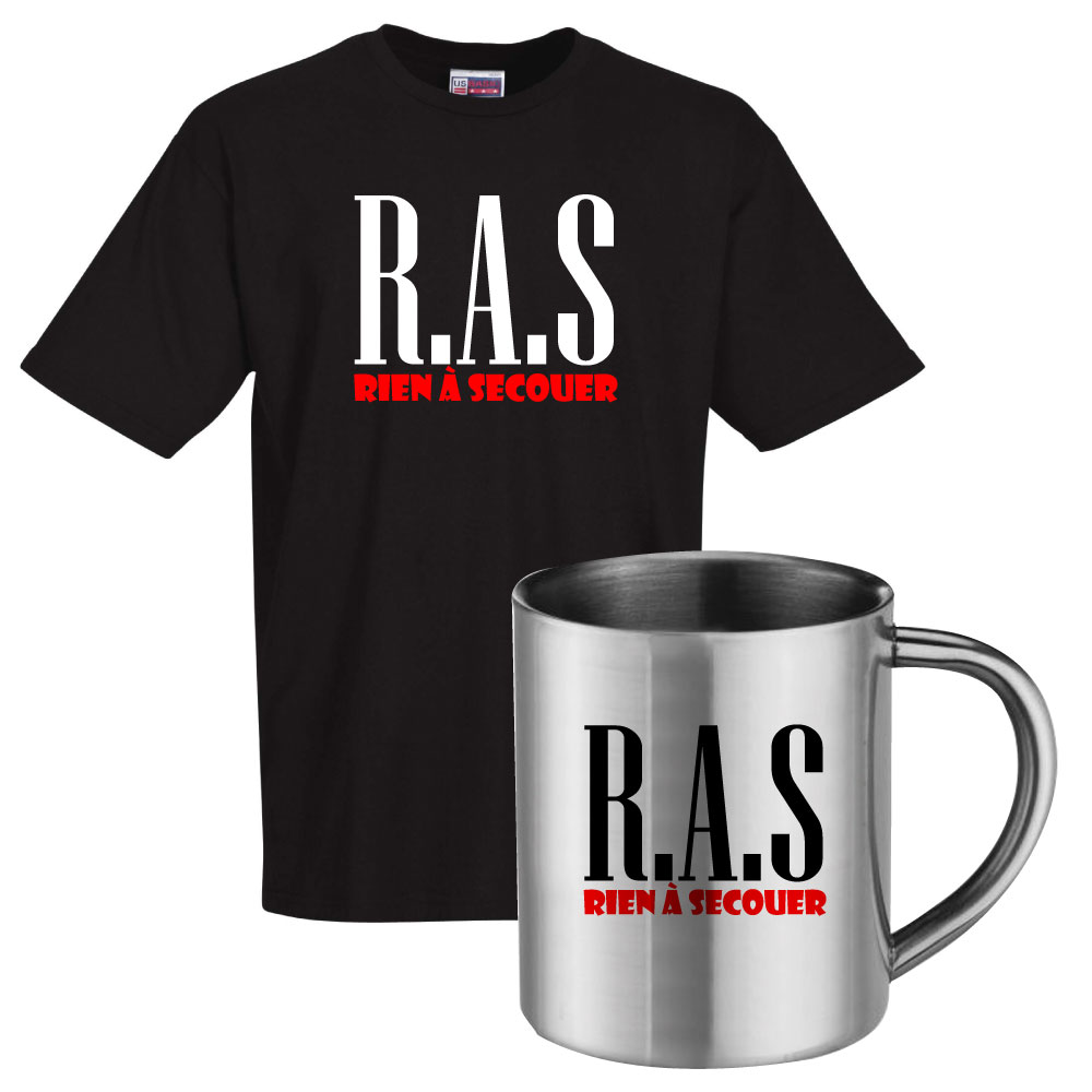 Ensemble tee shirt noir et mug Rien à Secouer