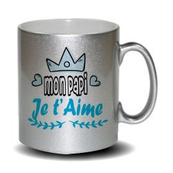 Mug pailleté Je t'aime Papounet
