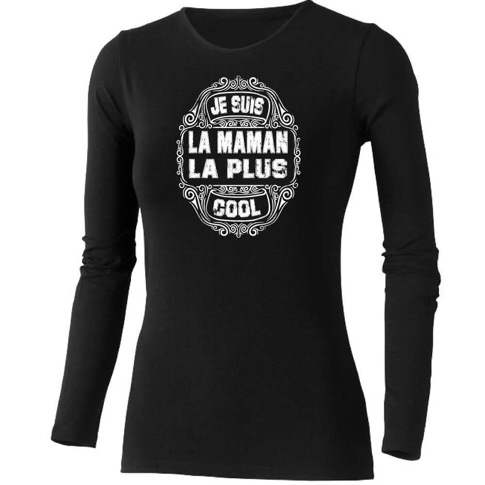 T-shirt femme manche longues fete des mères noir Je suis la Maman le plus Cool