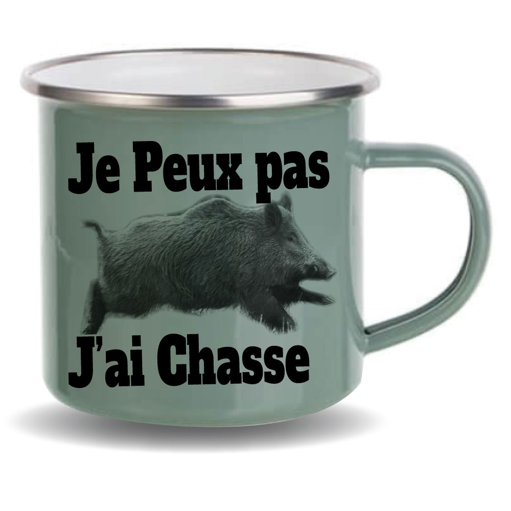 Mug inox emaillé vert - chasseurs - Je Peux Pas J'Ai Chasse