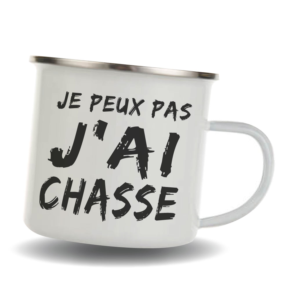Mug inox emaillé blanc - chasseurs - Je Peux Pas J'Ai Chasse