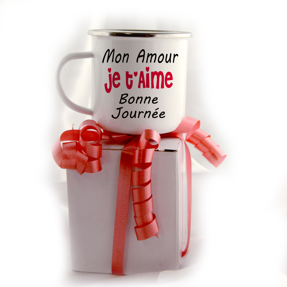 Mug humoristique " Mon amour je t'aime bonne journée" en inox émaillé