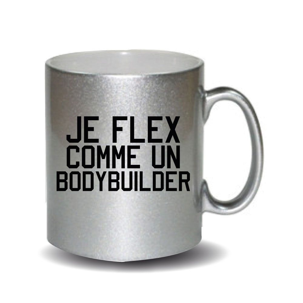 Mug pailleté gris Je Flex comme un Bodybuilder