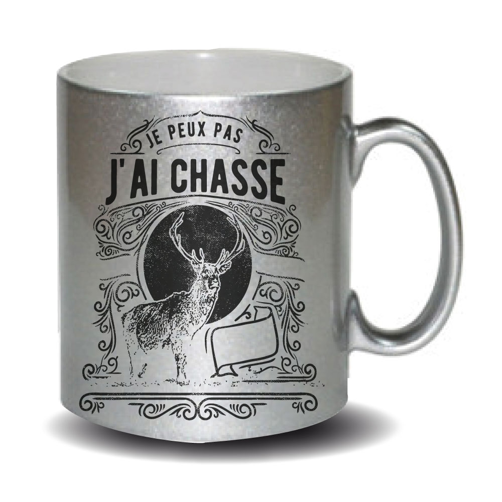 Mug pailleté gris Je Peux Pas j'Ai Chasse Cerf