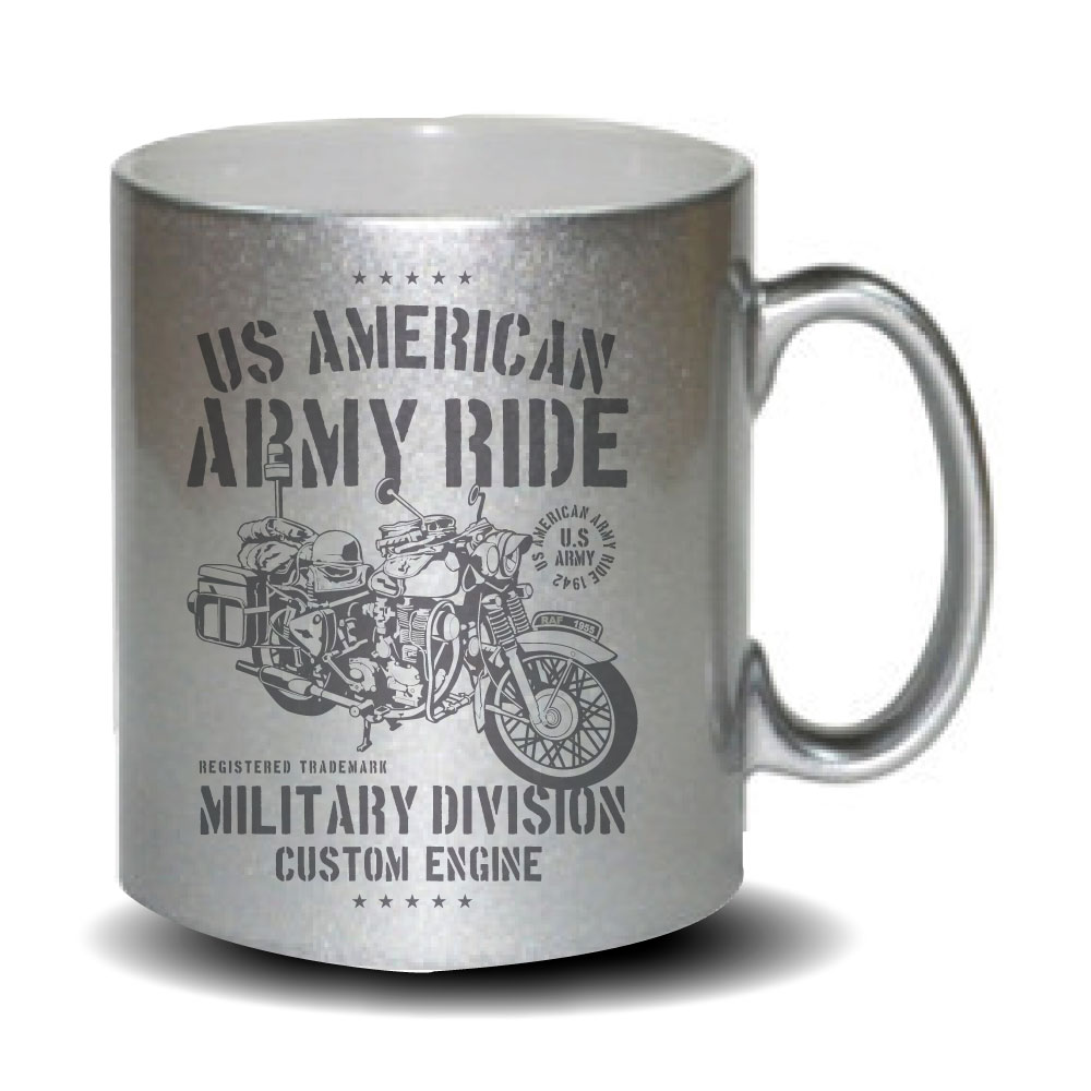 Mug humoristique Gris pailleté American Army Ride, pour bikers et amateur custom et Harley davidson