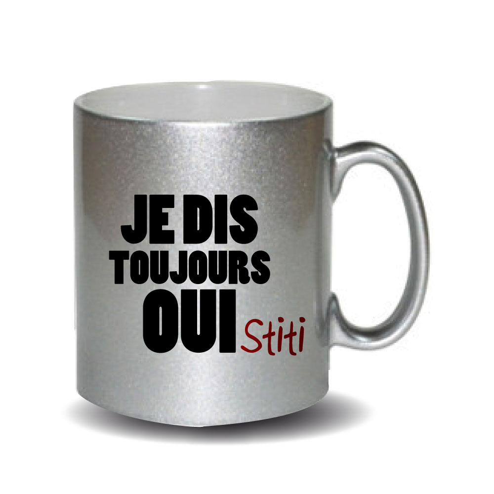 Mug humoristique gris païlleté Je dis toujours OUIstiti