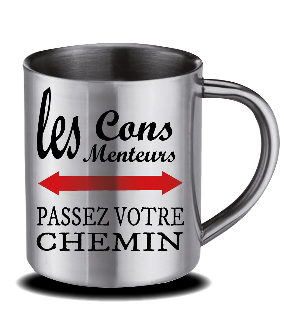 Mug inox , les cons les menteurs passez votre chemin