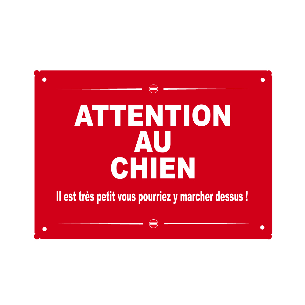 Plaque de rue humoristique "ATTENTION AU CHIEN" il est très petit et vous pourriez y marcher dessus !