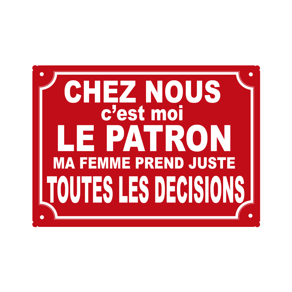 Plaque de rue c'est moi le patron ma Femme prend juste toutes les decisions