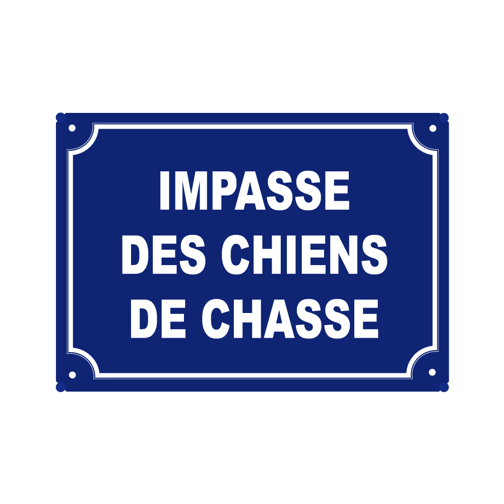Plaque de rue humoristique "Impasse des chiens de chasse"