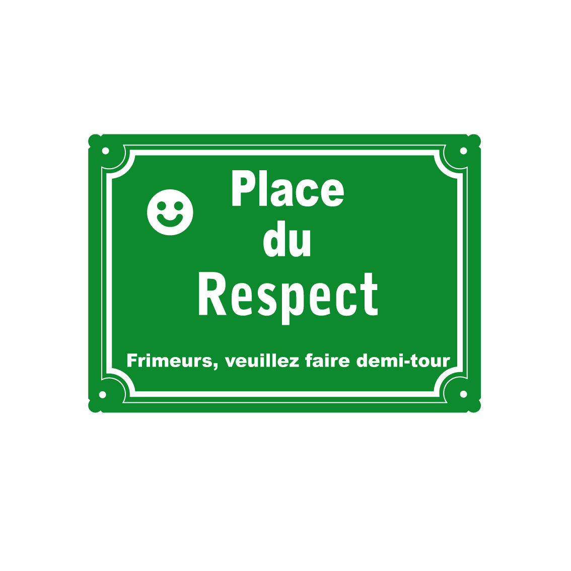 Plaque métal humoristique. Place du respect. Frimeurs, veuillez faire demi-tour.