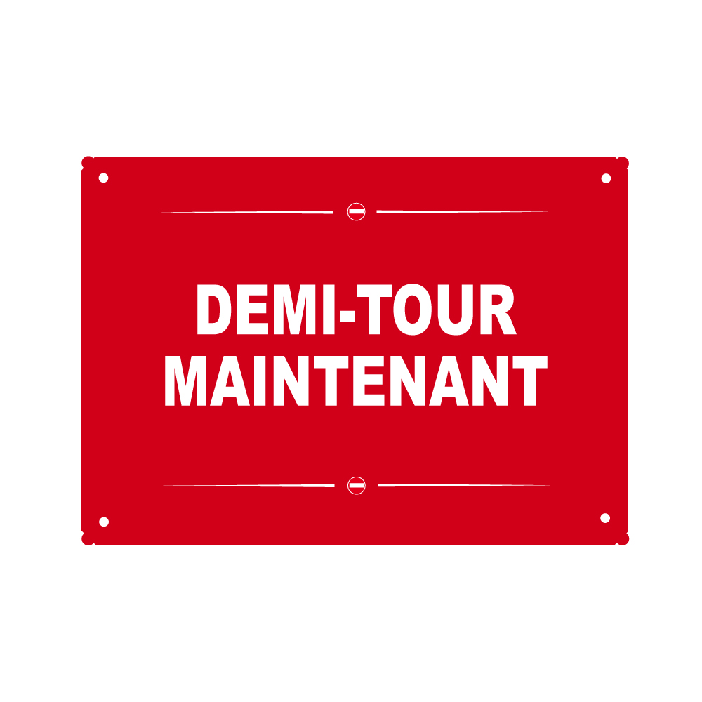 Plaque rouge humoristique "DEMI-TOUR MAINTENANT"
