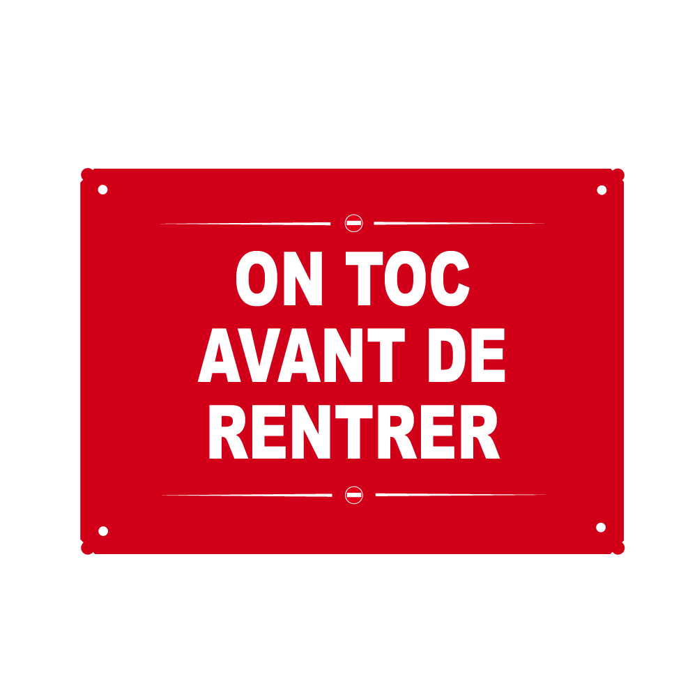 Plaque rouge "ON TOC AVANT DE RENTRER"