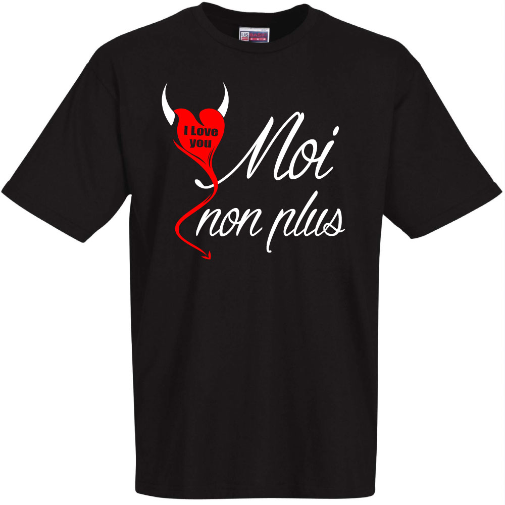 Tee shirt Saint Valentin noir manches courtes " I love you moi non plus"