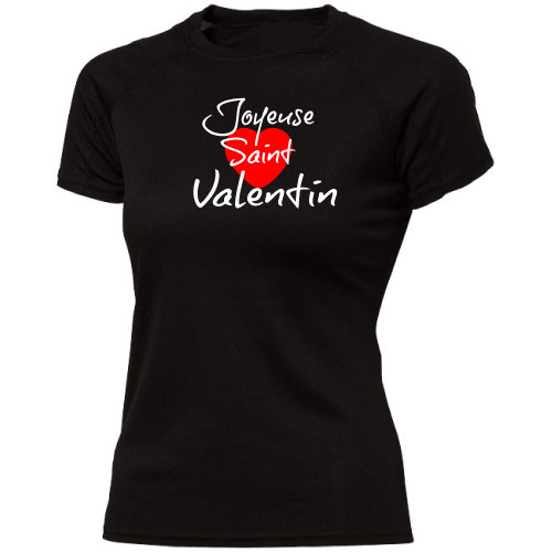 T-shirt noir joyeuse saint valentin, écriture blanche cœur rouge