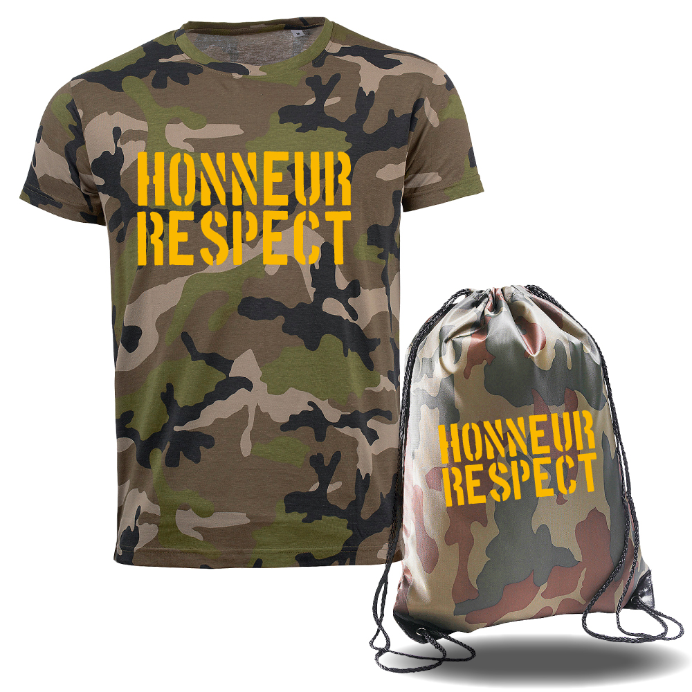 Ensemble Tshirt et Sac à dos Camouflage "Honneur Respect"