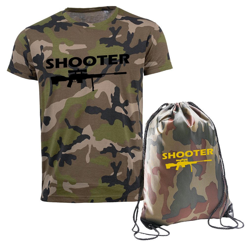 Ensemble Tshirt et Sac à dos Camouflage "SHOOTER" .... Tee shirt humoristique de bonne qualité. pour la fête des pères