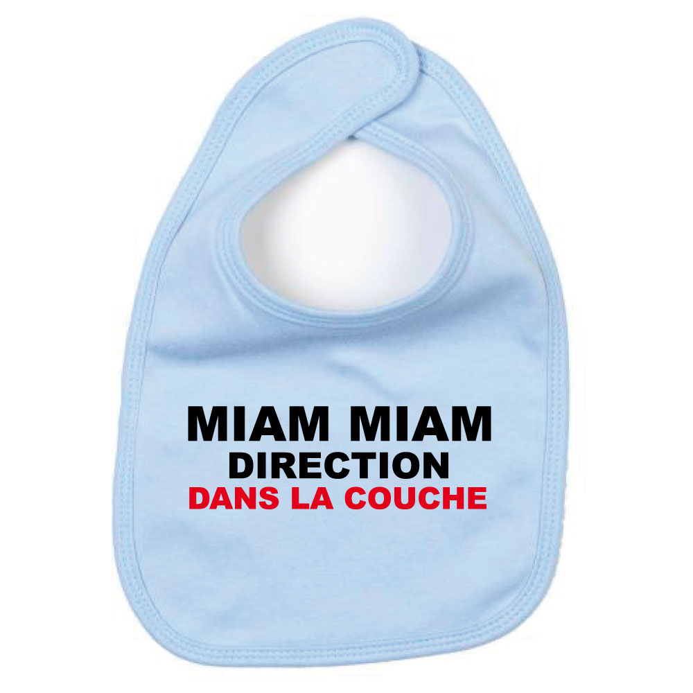 Bavoir humoristique pour bébé "Miam miam direction dans la couche" bleu - Cadeau de naissance - cadeau d'anniversaire bébé - cadeau humoristique