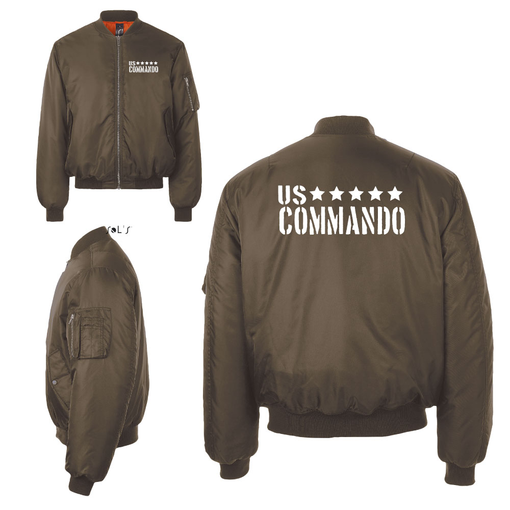 Blouson bomber kaki US COMMANDO. Blouson bomber de bonne qualité de couleur Terre sombre