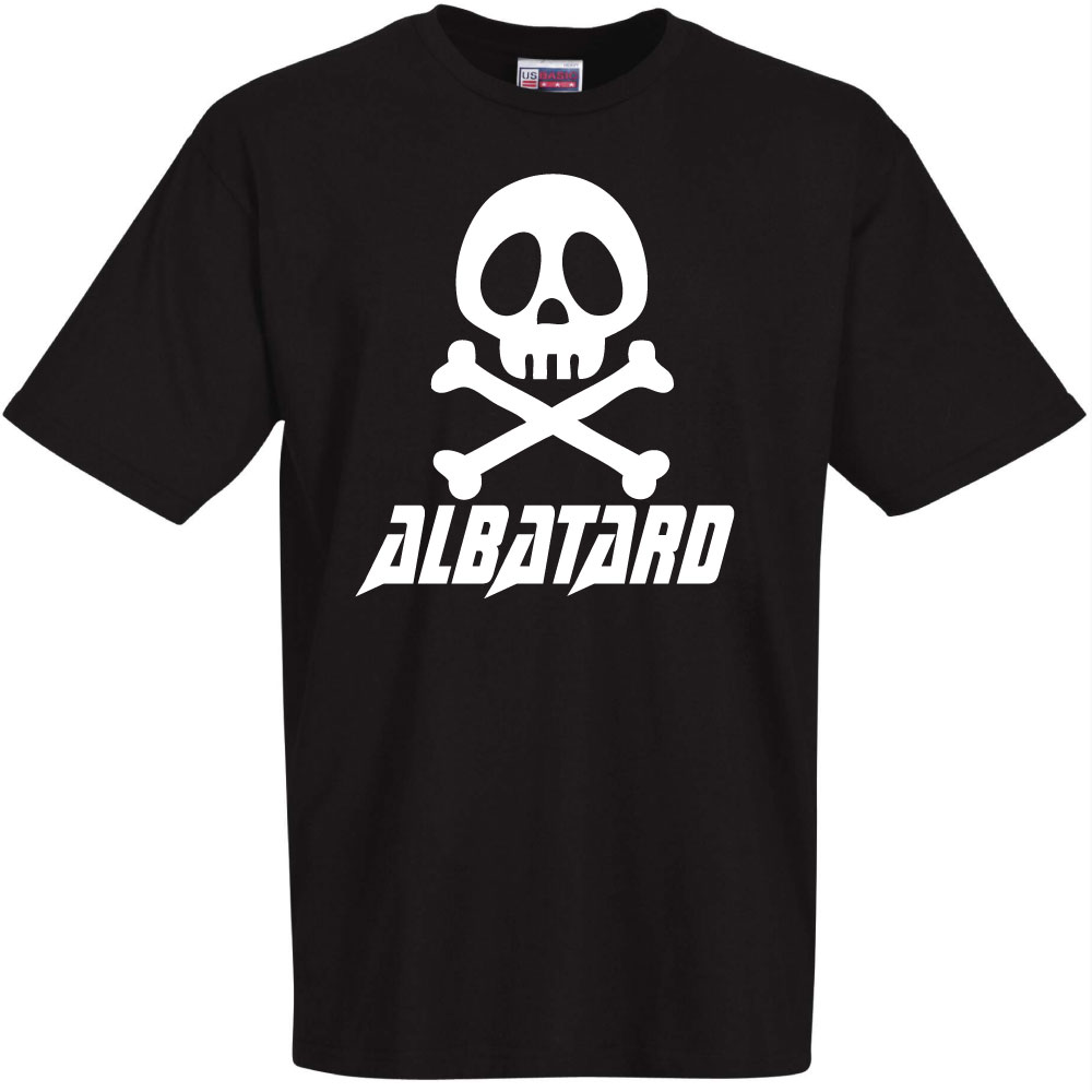 Tee shirt noir manches courtes tête de mort balafrée albatard parodie