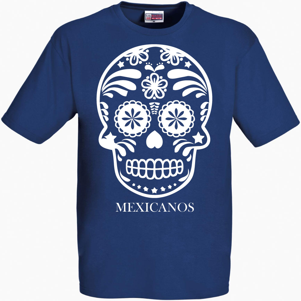 t-shirt noir au motif tete de mort au style typiquement mexicain