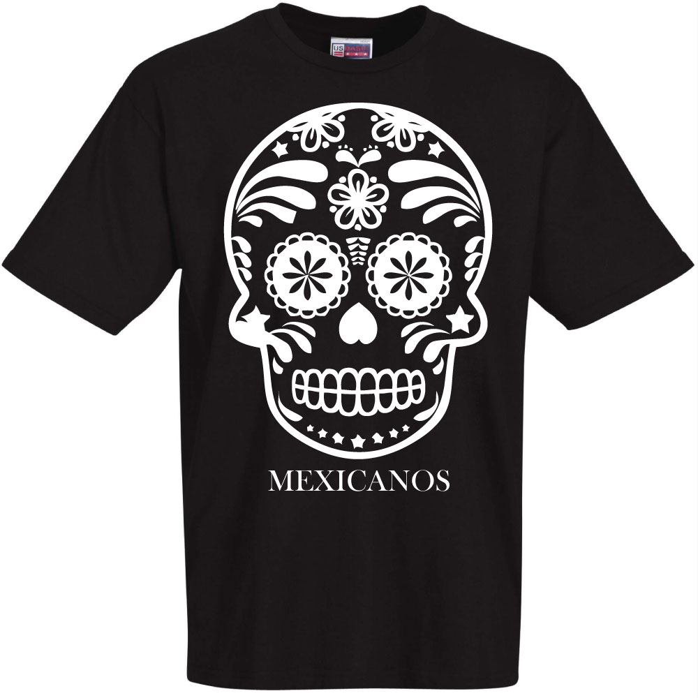 t-shirt noir au motif tete de mort au style typiquement mexicain
