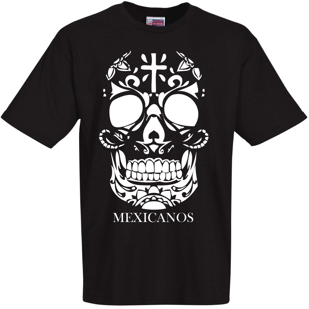 t-shirt noir au motif tete de mort au style typiquement mexicain
