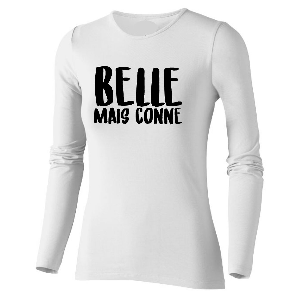 Tee shirt femme blanc en manches longues "belle mais conne"