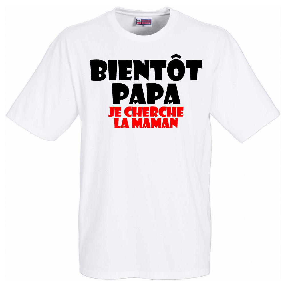 T-shirt blanc "Bientôt Papa Je cherche la Maman"