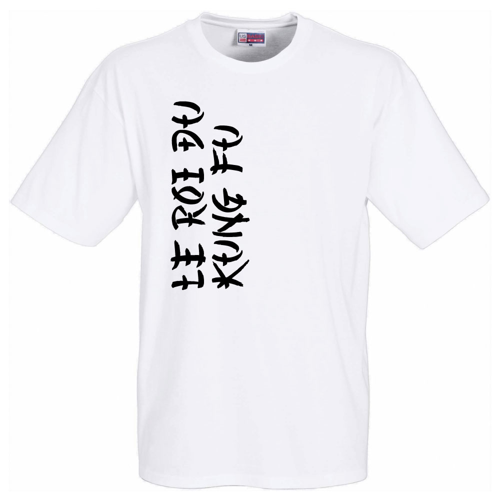 Tee shirt blanc Le Roi du Kung Fu sous forme d'un faux message Chinois