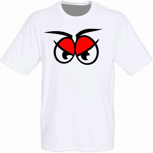 t-shirt blanc yeux, yeux noir énerver avec paupière rouge