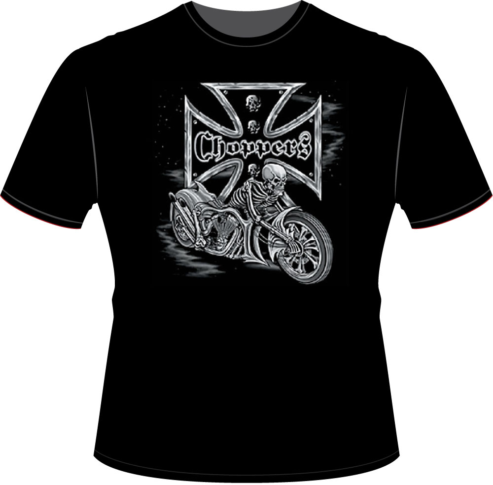 tee shirt noir avec illustration d'une croix chopper et d'une moto