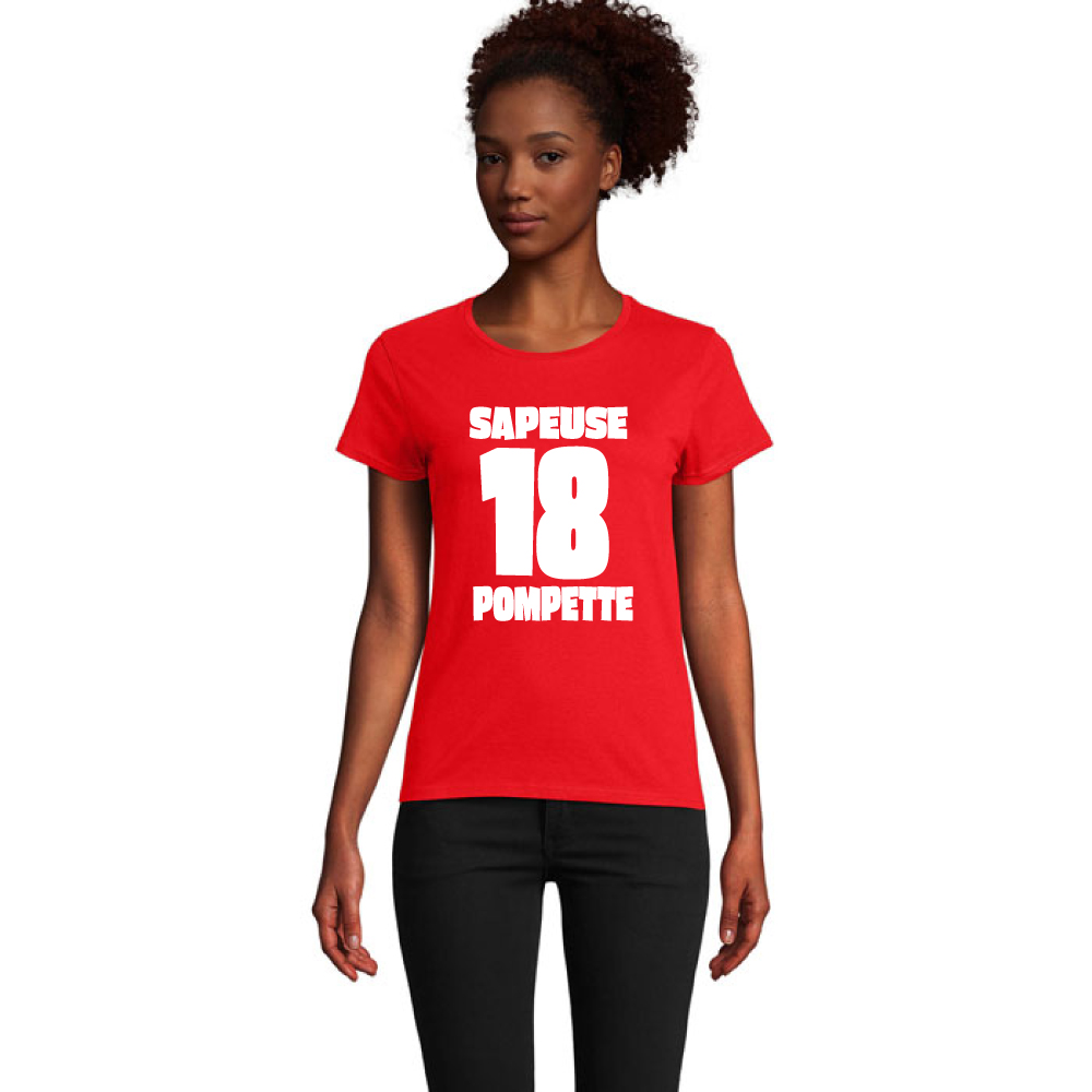 T-shirt femme rouge Sapeuse Pompette 18